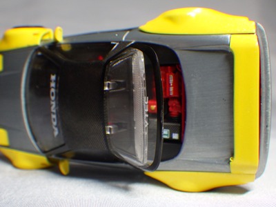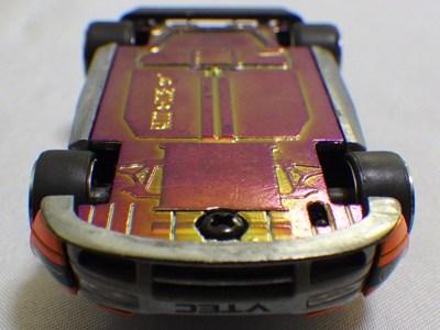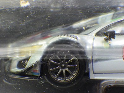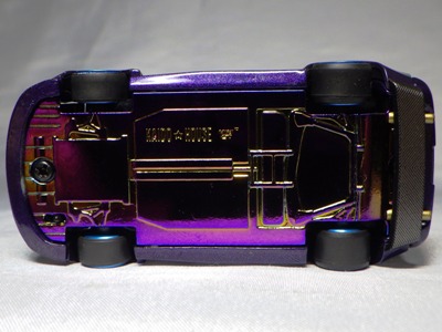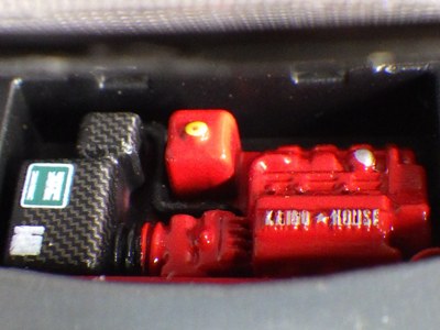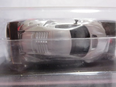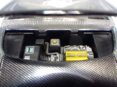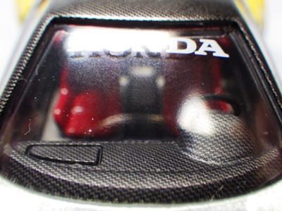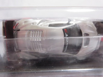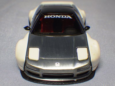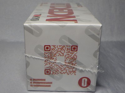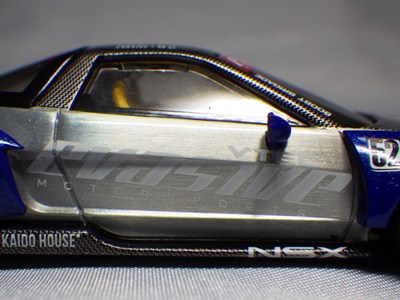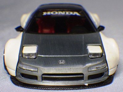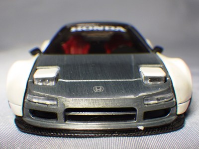 2023年9月22日に受注が開始され、2024年4月26日に発売された「KHMG094 ホンダ NSX Evasive V1(左ハンドル)」のチェイスカーバージョン。 パッケージはノーマルバージョンと変わらないため、入手は運任せ。 基本的にはオークション等で探すしかなく、3万円以上の出品物が複数あるくらい相場が高くて、2万円台の出品物でも手を出せなかったが、2万円を切ったところで衝動買いしてしまった。 その時は喜んでいたが、同じ出品者の方が、その後同じ商品を2,000円安く出品していているのを見つけ(チェイス目当てにいくつ購入したのか?)、ちょっとショックを受けた。 この商品には裏板にあるレバー操作によってリトラクタブルヘッドライトを開閉させるギミックがある。 |