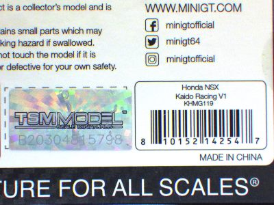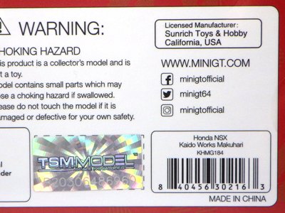 | KHMG119 | ホンダNSX Kaido Racing V1(左ハンドル) | ○ | × | ○紙箱 | × |