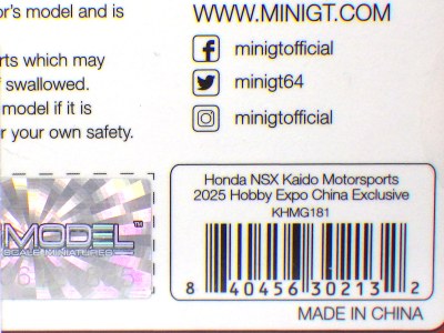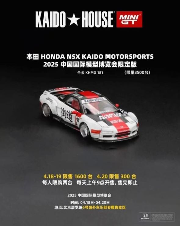 | 1/64 MINI-GT「KHMG181 Honda NSX Kaido Motorsports 2025 Hobby Expo China Exclusive」/? 元/トゥルースケールミニチュアズモデル×KAIDO HOUSE | |