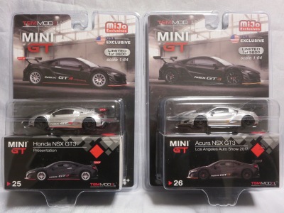 2018年11月13日にサンリッチジャパンが受注を開始したMINI-GT1/64「Honda NSX GT3 Presentation」と「Acura NSX GT3 Los Angeles Auto Show 2017」が