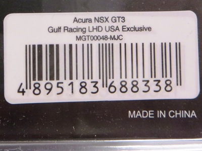 ACURA NSX GT3 Gulf Racing 北米限定MiJoブリスターパッケージ チェイスカー」 /2,000円税別/トゥルースケールミニチュアズモデル |