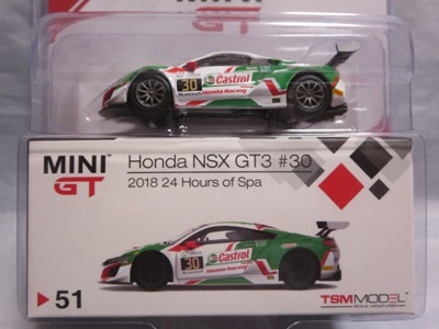 | 1/64 MINI-GT「MGT00051-L Honda NSX GT3 #30 2018 24 Hours of Spa LHD」/1,600円 税別・1,760円税込/トゥルースケールミニチュアズモデル | |