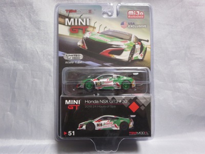 | 1/64 MINI-GT「MGT00051-MJ Honda NSX GT3 #30 2018 24 Hours of Spa LHD 北米限定MiJoブリスターパッケージ」/$?/トゥルースケールミニチュアズモデル | |