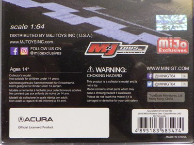 1/64 MINI-GT「MGT00026-MJC Acura NSX GT3 Los Angeles Auto Show 2017 北米限定MiJoブリスターパッケージ チェイスカー」 /?香港ドル/トゥルースケールミニチュアズモデル |
