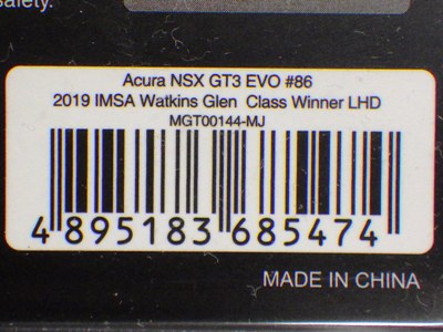 1/64 MINI-GT「MGT00144-LアキュラNSX GT3 EVO IMSA ワトキンスグレン 2019 #86 クラス優勝車」 /1,600円税別・1,760円税込/トゥルースケールミニチュアズモデル |