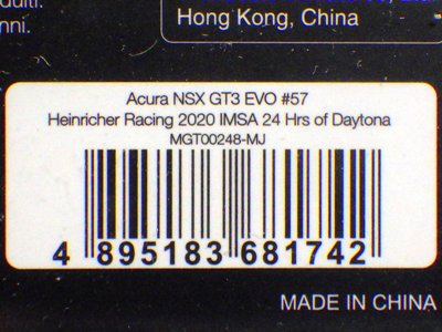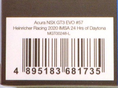 | MGT00248 | アキュラNSX GT3 EVO IMSA デイトナ24h 2020 #57 | ○ | ○ | × | × |