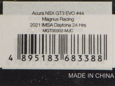 | MGT00302 | アキュラNSX GT3 EVO IMSA デイトナ24h 2021 #44 | ○ | ○ | ○ブリ | × |
