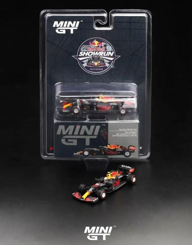 2024年の9月28日に台湾・台中市で開催されたレッドブルのF1デモランイベント「レッドブル Showrun Taichung」で販売されたMGT00800-BLとミニカー自体は同じものかと思いきや、あちらは2022年仕様で、こちらは2023年仕様である。 2024年9月11日に受注を開始し、2025年5月28日に発売になった。 日本限定のブリスターパック商品でチェイスカーは存在しない。 |