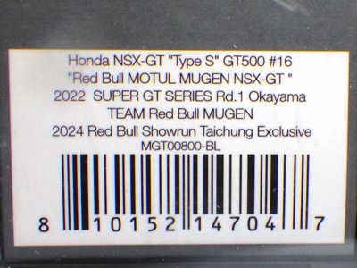 | MGT00800-BL | ホンダ NSX-GT タイプS GT500 #16 レッドブル MOTUL MUGEN NSX-GT 2022 スーパーGTシリーズ Rd.1岡山 チーム レッドブル無限 2024 Showrun Taichung Exciusive | × |