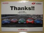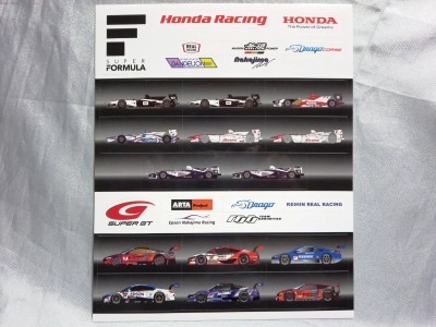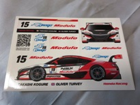 2018年12月9日にMOTEGIで開催されたホンダレーシングサンクスデイ2018での配布物。 ドライバーのみならず、モデューロプリティやモデューロスマイルの女の子たちまでイラスト化されている。 9.9cm×14.9cm。 |