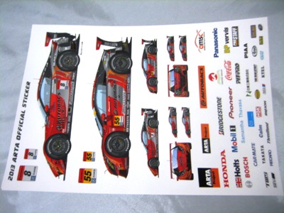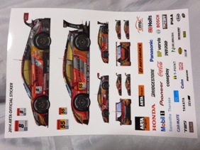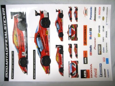 | 2010年8月ヤフオクにて入手。スーパーGT第5戦のキッズウォークにて配布されていた物。9.7p×15p。HSV-010のマシン等、5枚のステッカーが1枚のシートに収められている。 | |