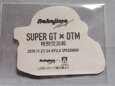 2020年9月、いつもGTグッズ関係でお世話になっているコレクター仲間の大阪のA氏からの頂いたもの。 スーパーGT2020開幕戦での配布物として製作されたものと思われるが、コロナ禍によってツイッターでのキャンペーンの賞品になった模様。 せっかく当選した賞品を譲ってくださったA氏に感謝。 10.0cm×10.5cm。 |