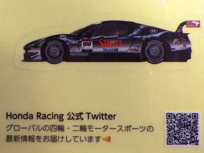 | GT300にNSXで参戦していたプライベーターのステッカー。6.0p×10.0p。サーキットで配付されたもの。 | |
