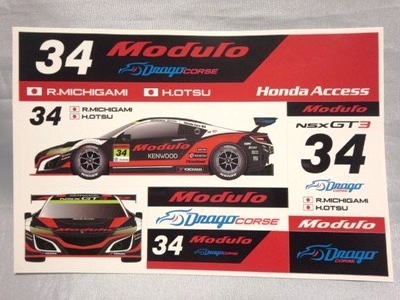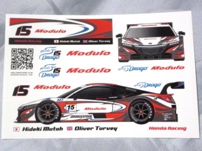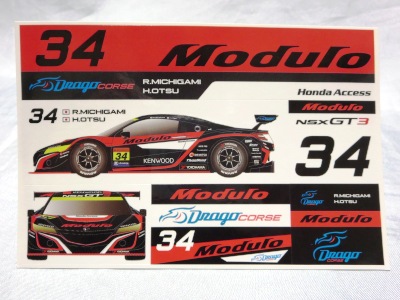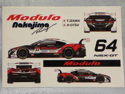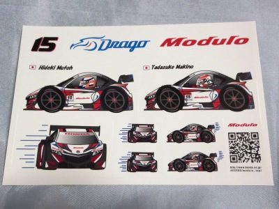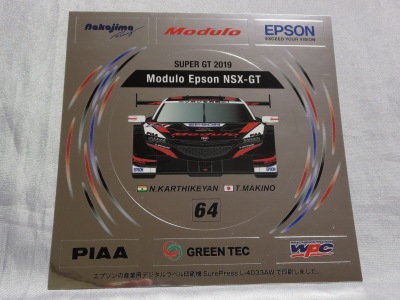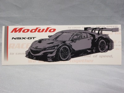 2019年4月コレクター仲間より譲っていただく。 スーパーGT2019開幕戦での配布物。 10cm×15cm。 開幕戦のGT300クラスで9位に入賞した「Modulo Drago CORCE」の「Modulo KENWOOD NSX GT3 #34」のステッカーは、このモデューロ版以外に、前年と同じくKENWOOD版が存在する。