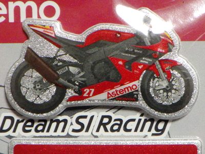 | ヤフオクにて購入。2007年スーパーGTにおいて、ARTA NSXがダブルタイトルを獲得したことを記念してホンダが製作。1枚のステッカーのためにわざわざ台紙まで用意する懲りよう。2ツ折りの台紙のサイズは12.8p×18p。 中に収められる楕円形のステッカーの幅は13.5cm。 | |