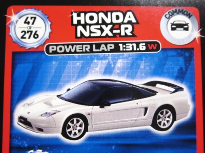| 2013年10月オークションにて入手。出品者がドイツにてコレクターより直接購入した、世界のスポーツカーのレース仕様車を題材にしたカードゲーム。全32枚あり、その中に日本車としてヨーロッパのレースに出場しているNSXが入っている。ケースあり。使用法などは不明。 | |||