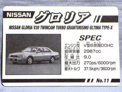| 109と同じNSX-RのGT1 TURBO仕様。109がリアでこれはフロント。シルバーのスペシャルカード。 | 表にはトミカ(赤)と箱の画像と実車のスペック、裏には実車(シルバー)の画像をプリント。パトカーは未入手。 | ||