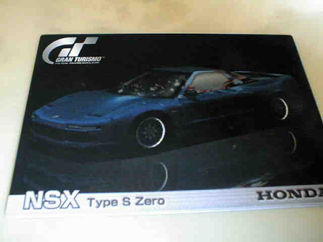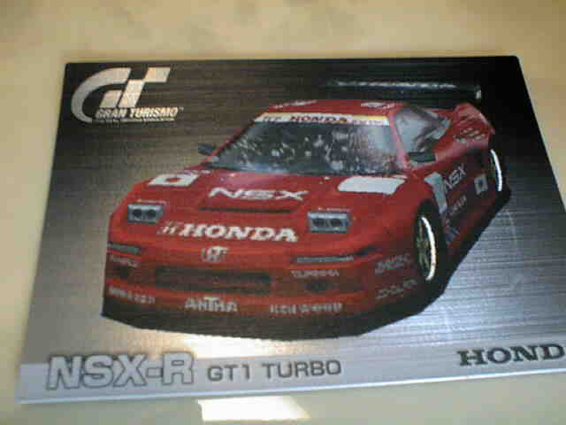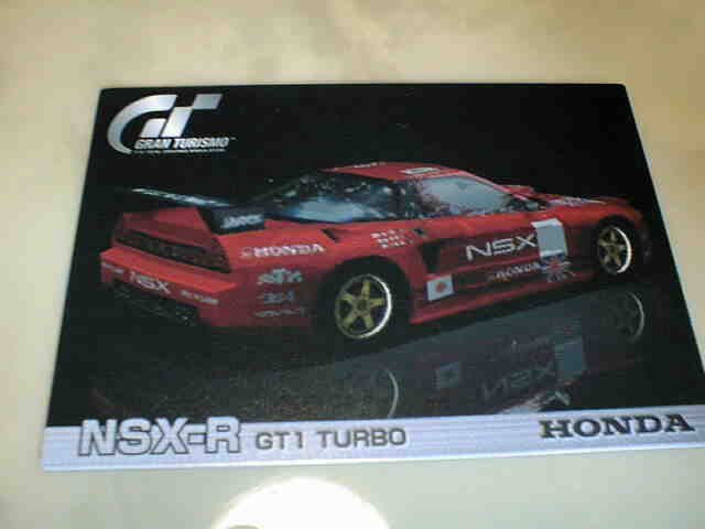 | ブルーのTypeSzeroのカード。裏面は087、088同様にクイックアーケードモード攻略アドバイス。 | ルマンに出場したNSX-RのGT1 TURBO仕様。裏面はグランツーリスモモードでの「賞金稼ぎ」。 | ||