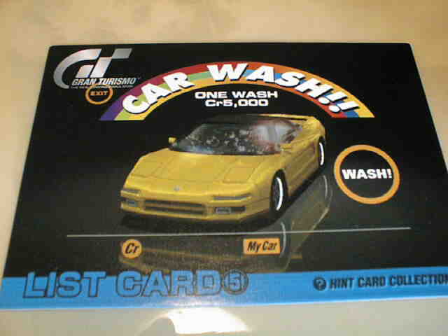 | オレンジのTypeSzeroの走行シーンをデザインした「スペシャルステージルート11」のカード。 | イエローのNSXのCAR WASHシーンをデザイン。裏面はリストカード5で141〜180のカードを紹介。 | ||