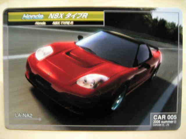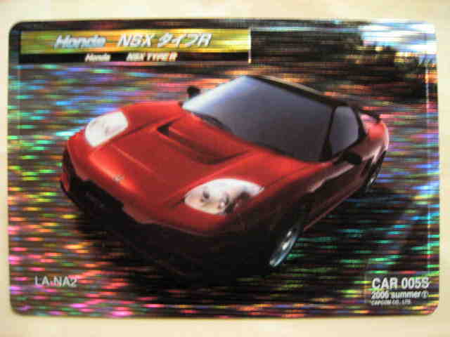 | 2006年10月23日にロケテスト版が登場したカプコンの新カードゲームで使用するカード。NSXが使用する技カード「ミラージュドリフト」。004C、004R、004Lの3種類が存在し、場面によって使い分ける。 | |||