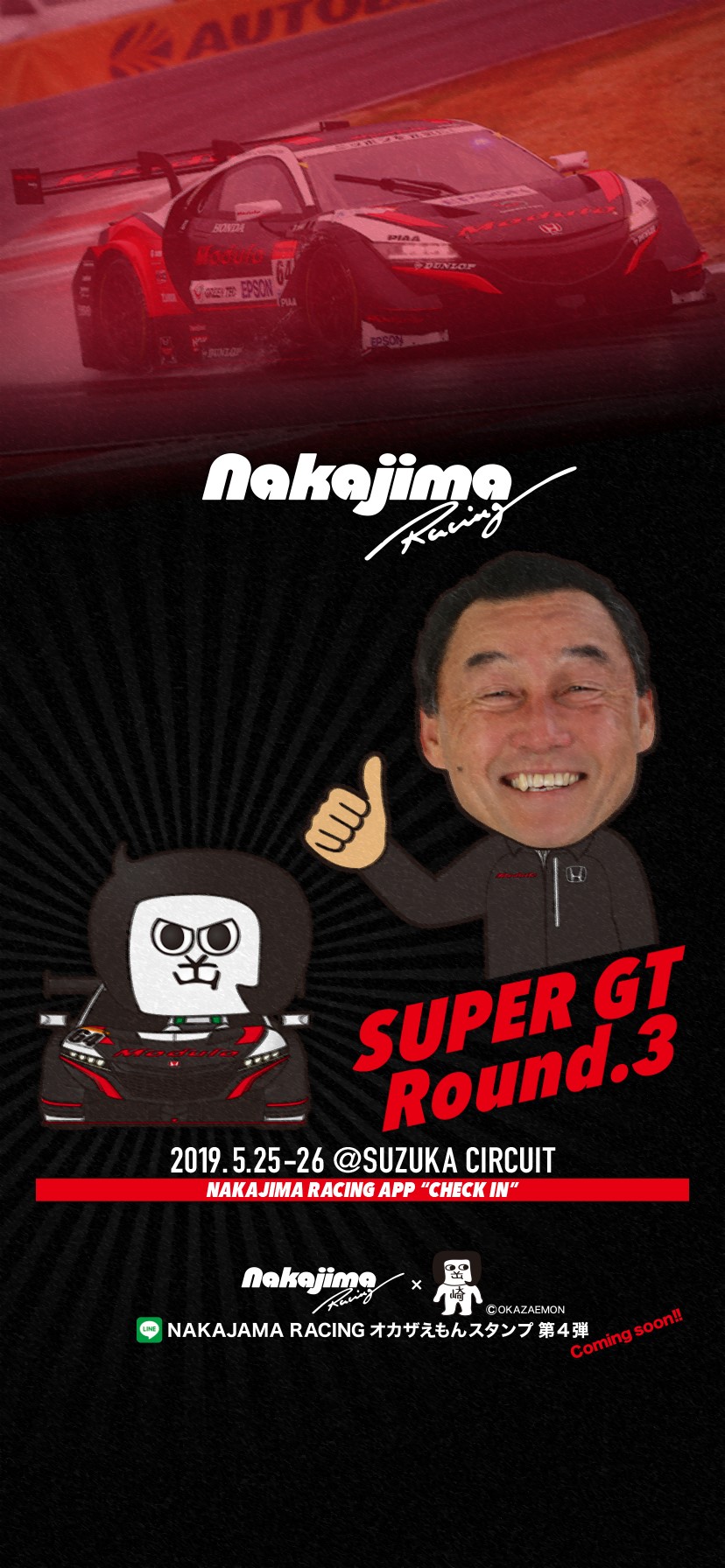 2017年5月にコレクター仲間のS氏が送って下さった画像。ナカジマレーシングのアプリをチェックするともらえる画像。ピットウオークで配布したステッカーに