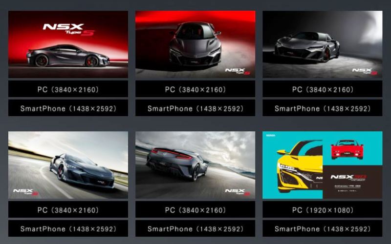 | 2021年9月11日、ホンダが「NSXタイプS特設サイト」を開設。 壁紙(PC用/スマートフォン用各5種)のダウンロードが可能。 下の画像はすべて圧縮済み(オリジナルのサイズは一番下の画像の通り)。 |