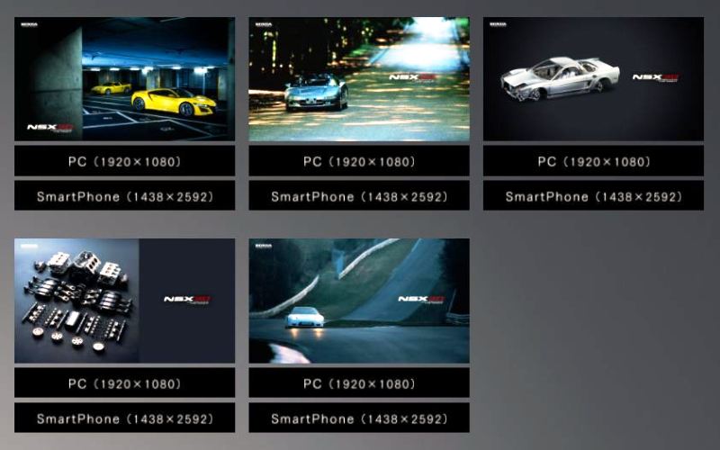 したときに、壁紙のダウンロードコーナーにタイプS壁紙と共にラインナップされていたもの。 2020年9月25日、ホンダが「NSX30周年記念特設サイト」を開設 したときに、は上記のグリーンの背景のイラスト調の壁紙のみがアップされたが、その後にアップされたものらしい。 壁紙(PC用/スマートフォン用各5種)のダウンロードが可能。 下の画像はすべて圧縮済み(オリジナルのサイズは一番下の画像の通り)。 |