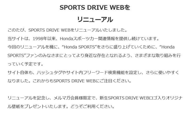 | 2024年7月1日、1998年の開設以来、ホンダのスポーツカー情報を提供し続けている「SPORTS DRIVE WEB」がリニューアル