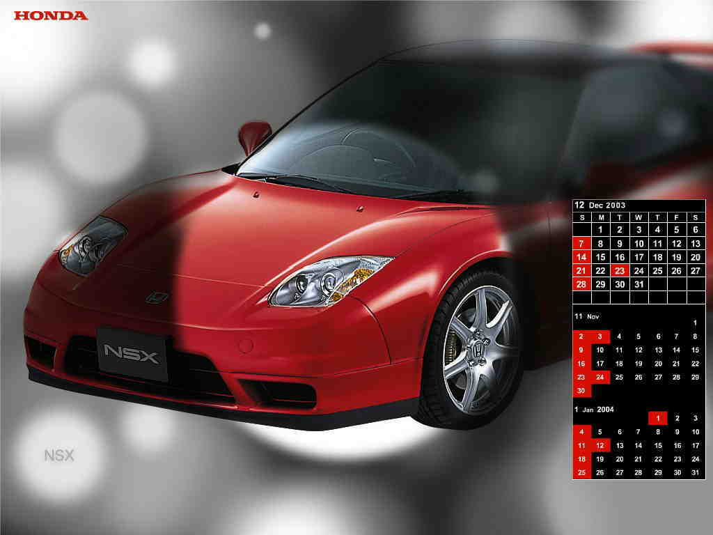| GTピンナップを紹介しているジャパンクラッシュネットが提供しているカレンダー壁紙。04年は画像のコーナーに毎月3種のモータースポーツジャンルの壁紙がアップされる。過去の壁紙もダウンロード可能。 | 2004年12月24日より配信が開始された壁紙5作目。左の画像はイメージ。ホンダのNSX-Rデスクトップサイトからダウンロードできる。 | ||