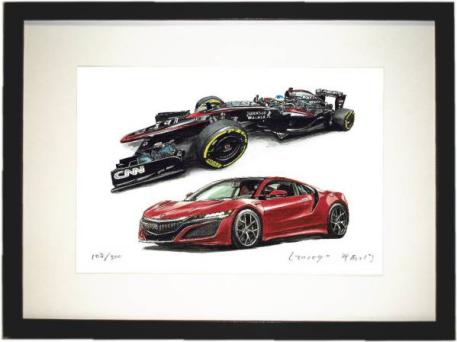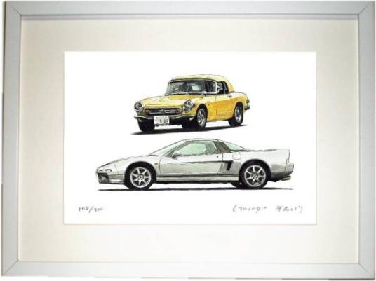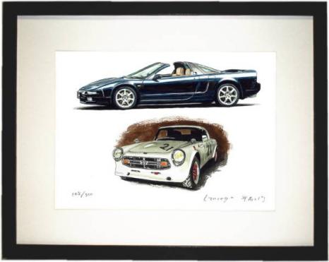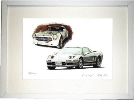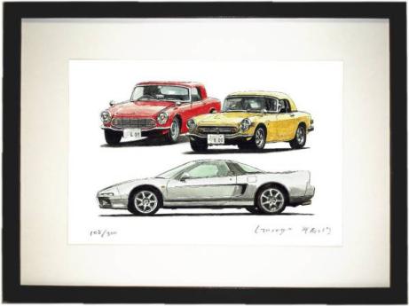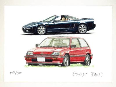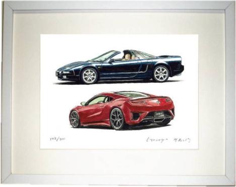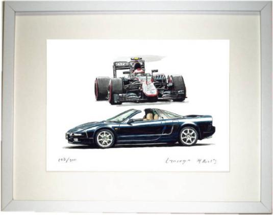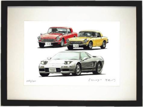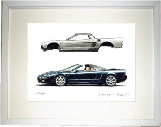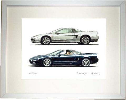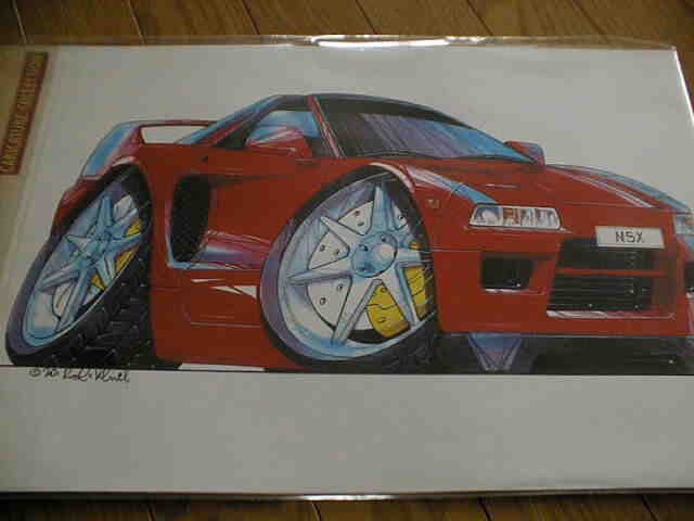 | 2005年12月10日発売。当HPのトップページイラストも描いて下さったイラストレーター・山本陽氏の作品を額装してホンダベニーが限定販売。5車種15種のうちNSXは4種がリリースされた。 | 2005年12月10日発売。当HPのトップページイラストも描いて下さったイラストレーター・山本陽氏の作品を額装してホンダベニーが限定販売。5車種15種のうちNSXは4種がリリースされた。 | ||