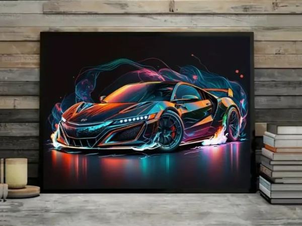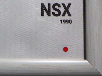 | ヤフオクにて購入。アキュラNSXの室内の画像。裏面には壁掛け用の穴あり。 | ヤフオクにて購入。イエローのアキュラNSXの画像が鮮やか。モデルは後期型。 | ||