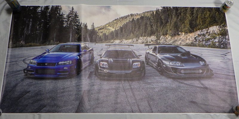 2024年3月4日に2度目の注文をし、3月10日に届いた商品のうちの一つ。 「1pc アンフレームド、キャンバスポスター、モダンアート、クールスポーツカーウォールアート、ファッションホームデコレーション、 友達、家族、リビングルーム、ベッドルーム、オフィス、キッチン、バーシープウォールデコレーションウィンターデコレーション、ルームデコレーション」という相変わらず長い商品名のキャンバスポスター大小2サイズ。 50.04×100.08cmの小さい方が定価1,764円のところ46%OFFの」938円、70.1×140.21cmの大きい方が定価2,438円のところ35%OFFの1,578円が3月13日現在の価格だが、購入時は大きい方が1,561円と、もう少し安かった。 左からスカイラインGT-R(R34)、NSX-R(NA2)、スープラ(JZA80)という完璧すぎるラインナップ。 |