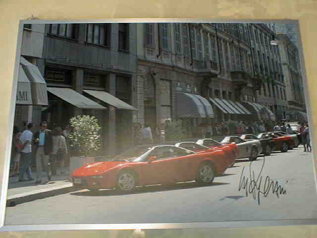 | ヤフオクにて購入。NSX発売時に記念品セットの1つとしてお得意さまなどに配布されたもの。販売店である全国のベルノディラーにも飾られた。専用の箱付き。 | NSX fiesta 2000にてアンケート抽選で 入手。その場で元F1ドライバーのレガツオーニ氏のサインをもらう。 | ||