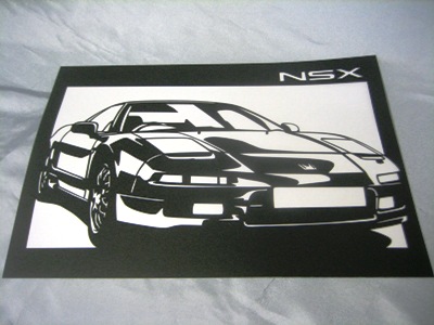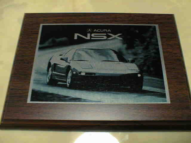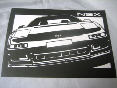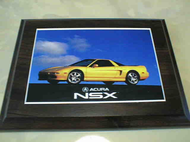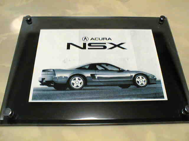 | ヤフオクにて購入。走行中のアキュラNSXのモノクロ画像。モデルは前期型。 | ヤフオクにて購入。モノクロの初期型アキュラNSX画像付。透明アクリル製。 | ||