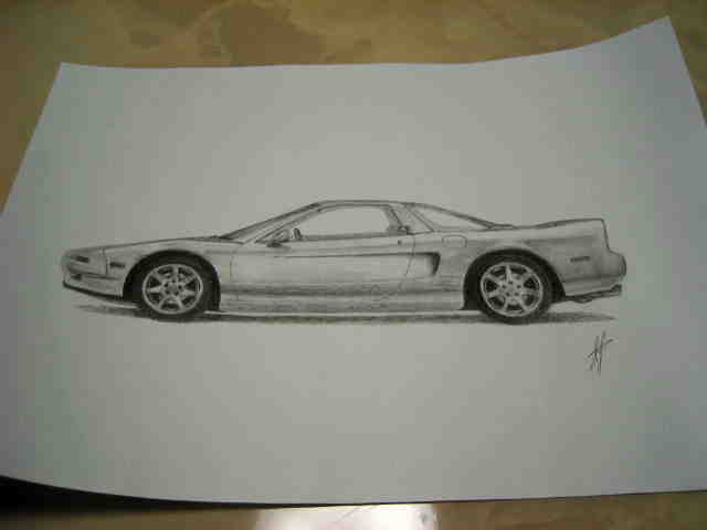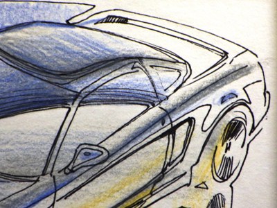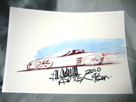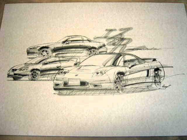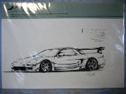 | 2010年9月5日に「ツインリンクもてぎ」で開催された「NSX 20th Festival Motegi」の前泊者を対象に、4日夜にNSXチーフデザイナー中野正人氏講演会が開催されたが、その参加者に 、公演後参加記念品として配付されたスケッチイラスト。A4サイズにプリントしたもので2種配布されたうちの1つ。 | |