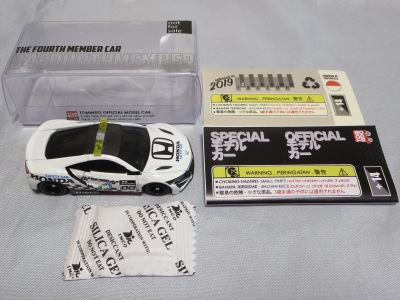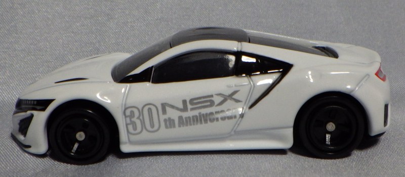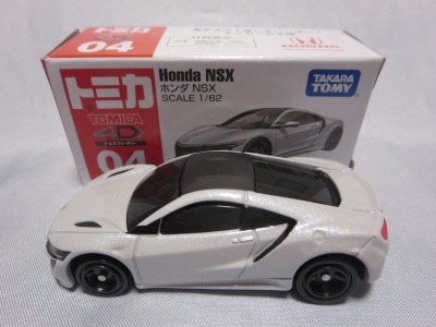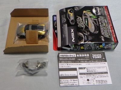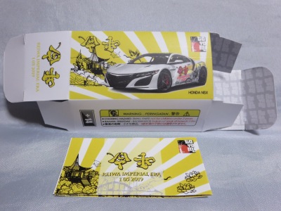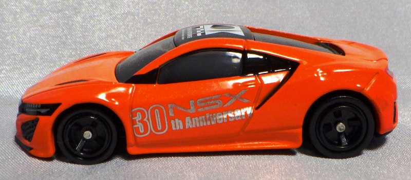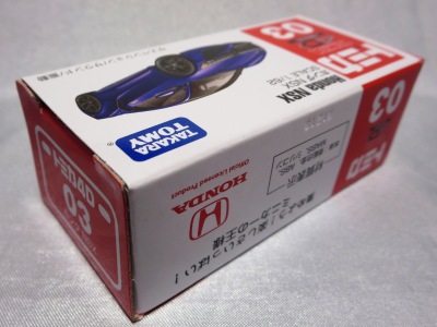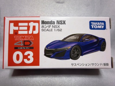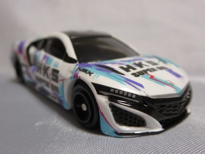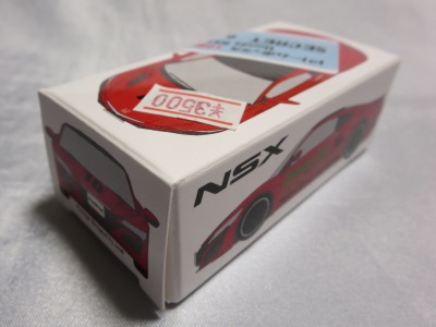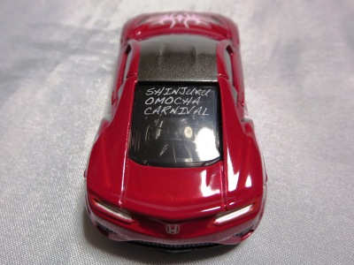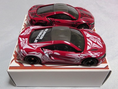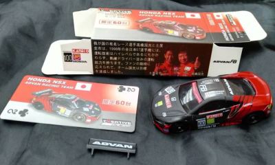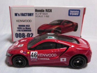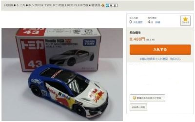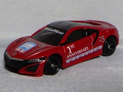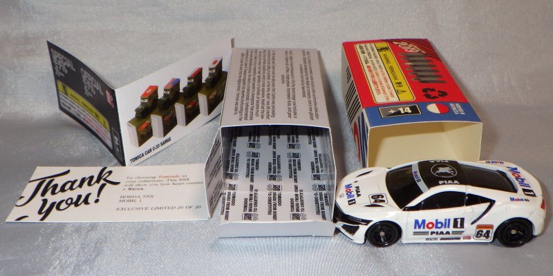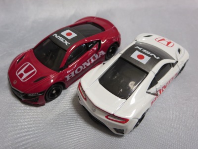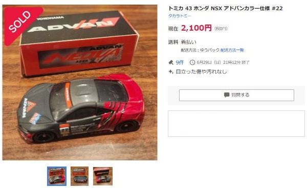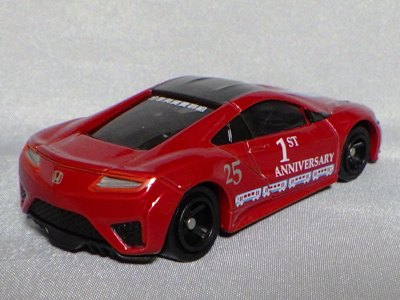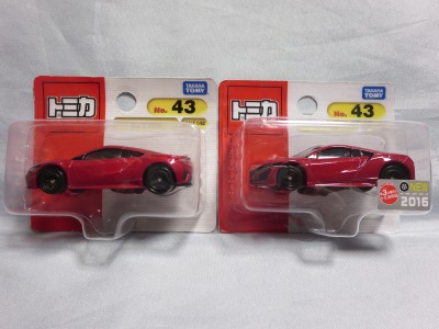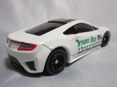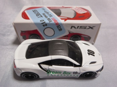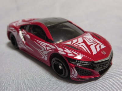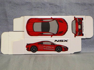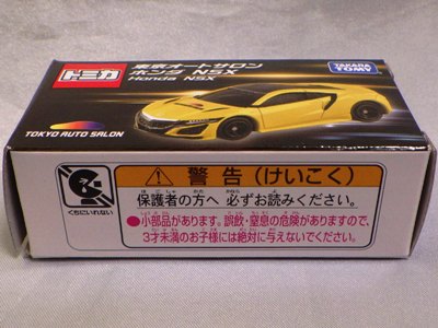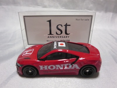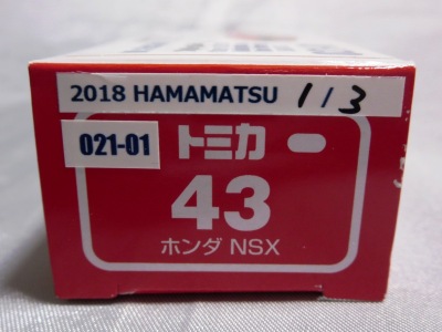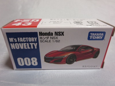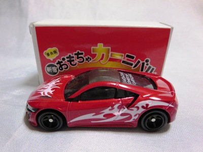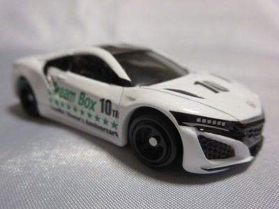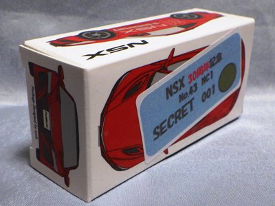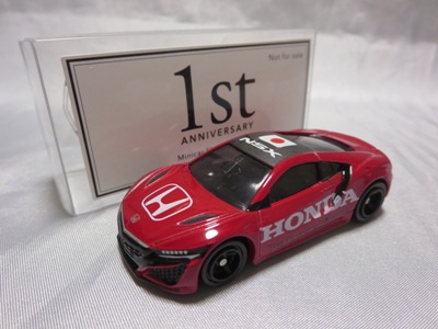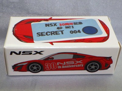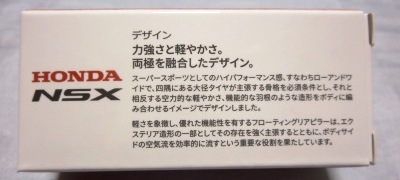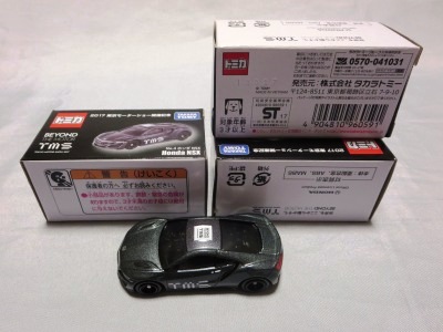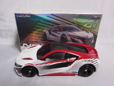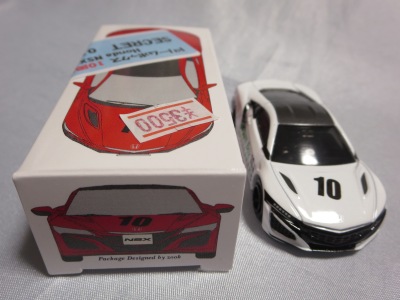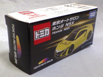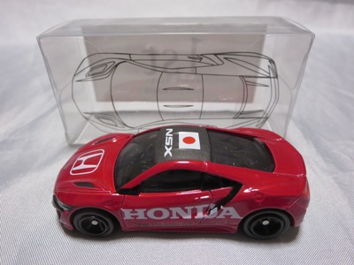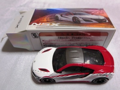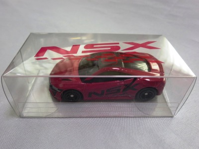 2017年6月4日ヤフオク初登場。当日、京王プラザホテル南館3階で開催された「第9回新宿おもちゃカーニバル」にて、BMWi8との2台セットで5,000円で販売されたもの。BMW i8のサイズに合わせて箱は大きめ(NSXの全長は約71mm、BMW i8の全長は約76mm)。