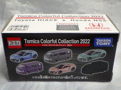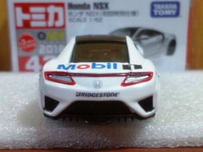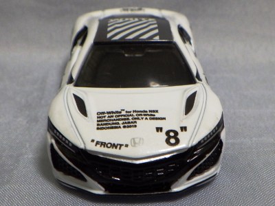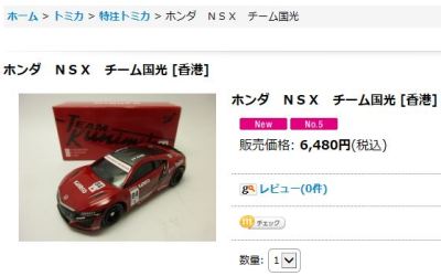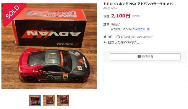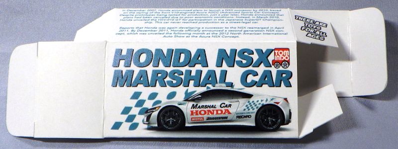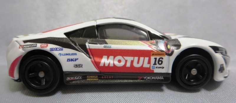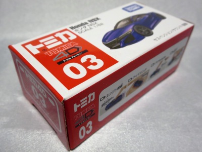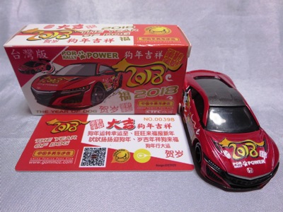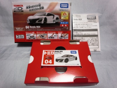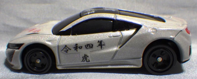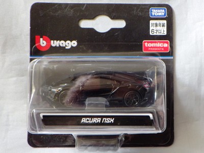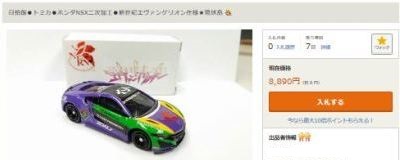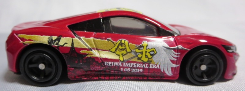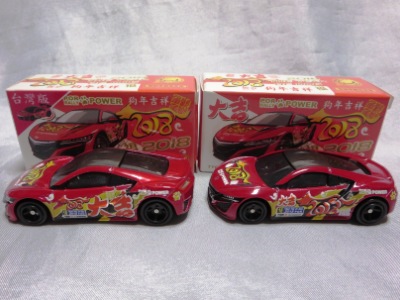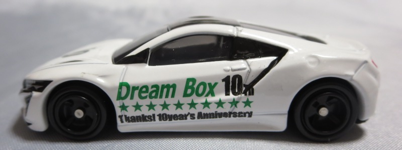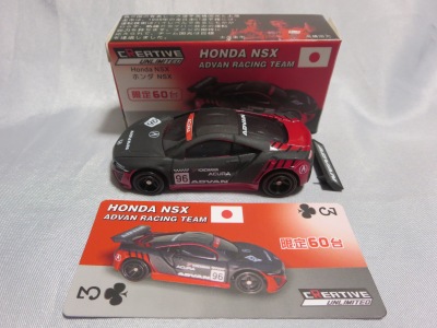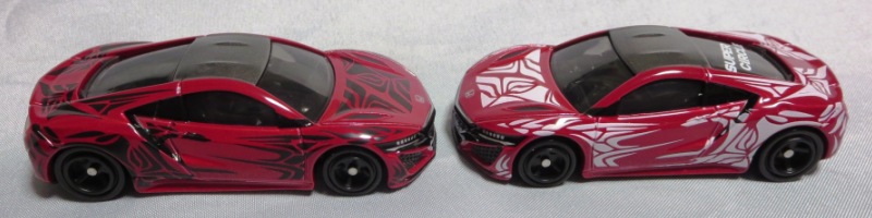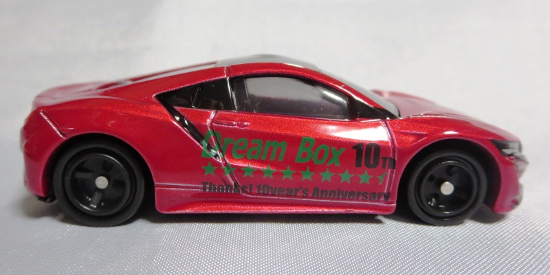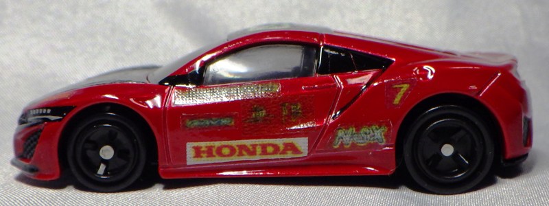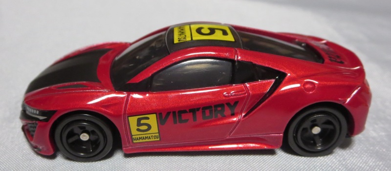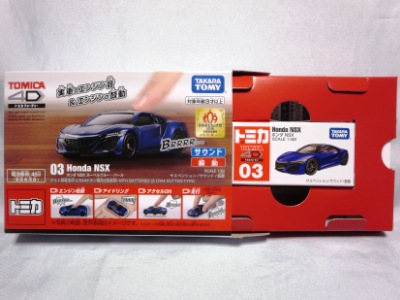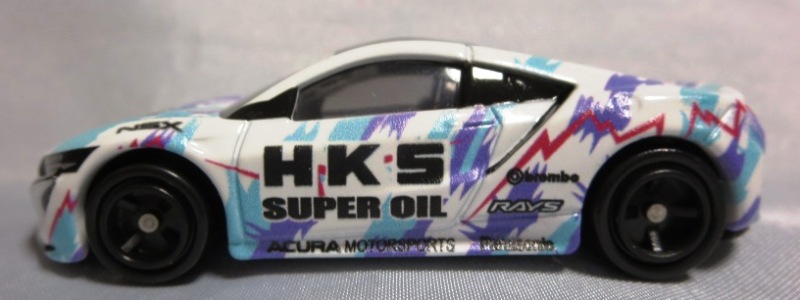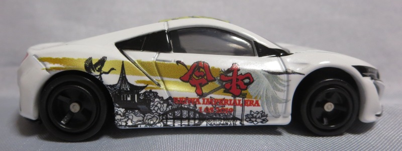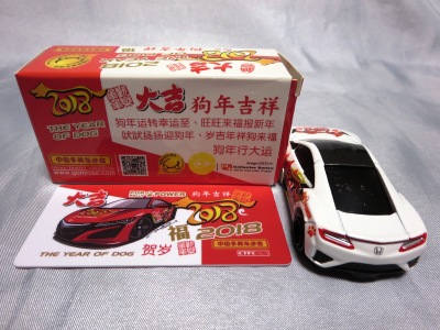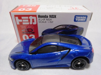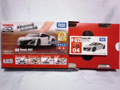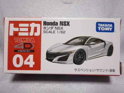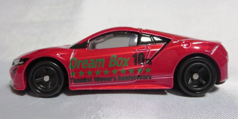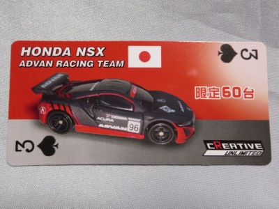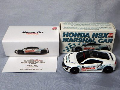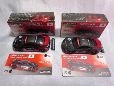 2017年6月4日ヤフオク初登場。当日、京王プラザホテル南館3階で開催された「第9回新宿おもちゃカーニバル」にて、BMWi8との2台セットで5,000円で販売されたもの。BMW i8のサイズに合わせて箱は大きめ(NSXの全長は約71mm、BMW i8の全長は約76mm)。