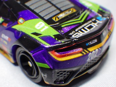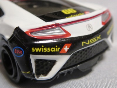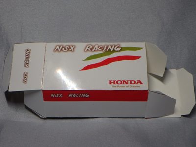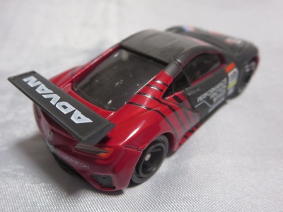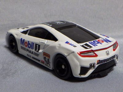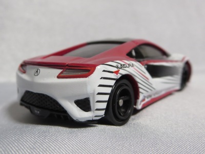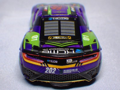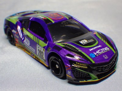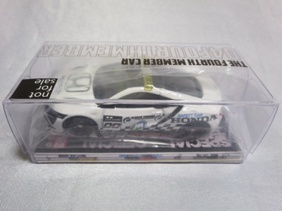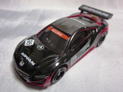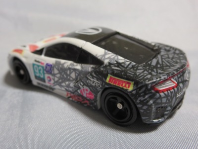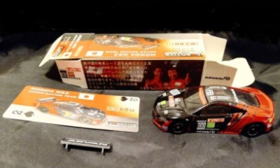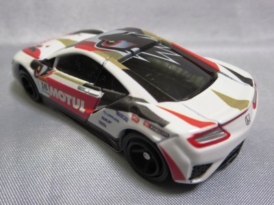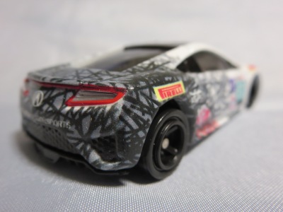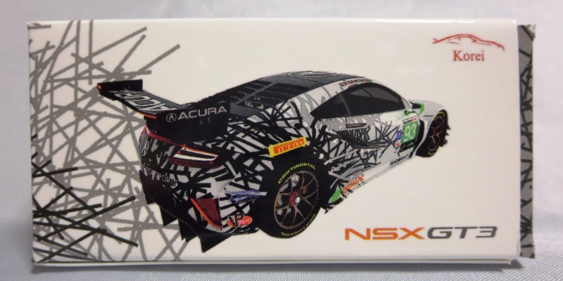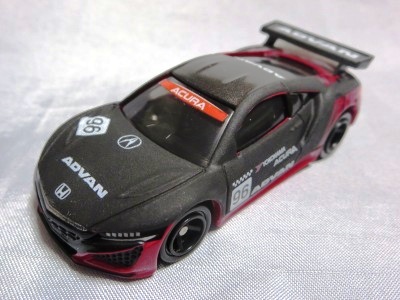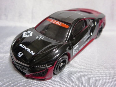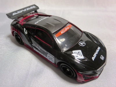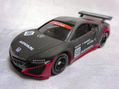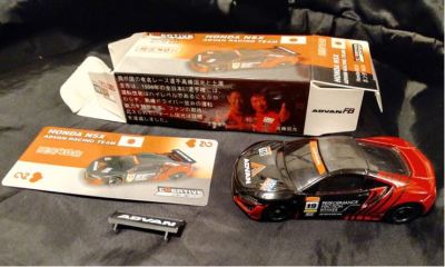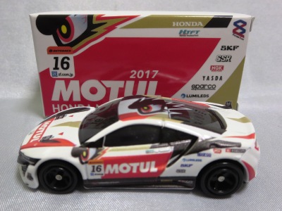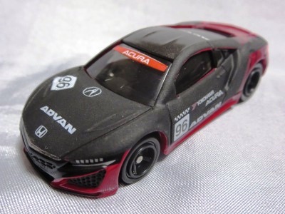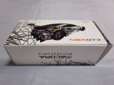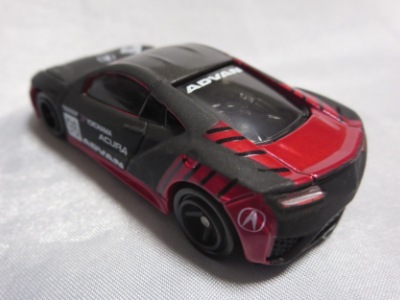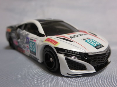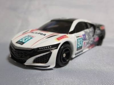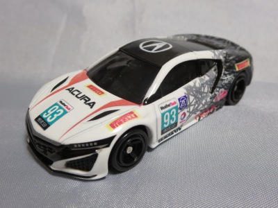 | 2017年5月18日ヤフオク初登場。2018年6月入手。 2016年12月21日にアキュラが発表したアキュラモータースポーツの93号車の複雑なカラーリングを忠実に再現している。 箱もメーカー品以上に凝った作りの商品。 |