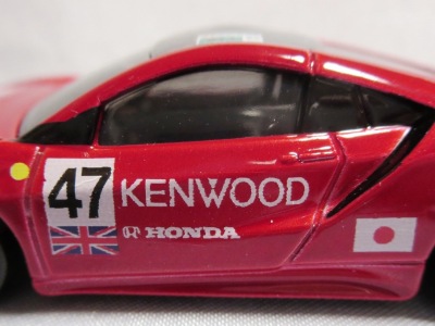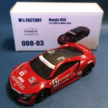 | 2017年10月6日にヤフオクに初登場したルマン仕様の2次加工品。2018年8月入手。 ルマン仕様のトミカは、これまでに1994年出場の47号車(ガリバーの2次加工品)、1995年出場の84号車(HDC特注とホンダレーシングコレクション)、1996年出場の75号車(HDC特注)の計4回、78トミカベースで発売されているが、43トミカベースで1995年出場の84号車風の海外2次加工品も出回っており、この商品も43トミカをベースとした1995年出場47号車風の海外2次加工品である。 1995年出場の47号車は、ミニカーとしてはhpiの1/43以外には京商の1/10ラジコンとプロバンスの1/43ガレージキットくらいしか発売されていない。 |