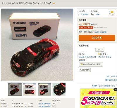 ▲2019年5月29日にヤフオクに初出品されたM's FACTORY製2次加工トミカ