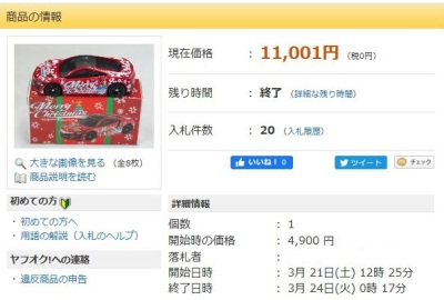 ▲2020年1月14日に兵庫県から出品され、1月18日に落札された2台目は17,020円で落札された。2020年1月19日に石川県から出品され、1月26日に落札された3台目は13,000円で落札された。