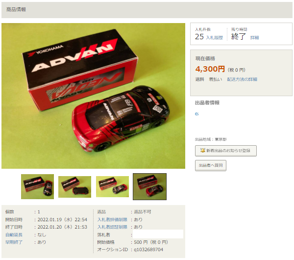 二次加工モデルとして今の相場的に4,000円以上は高いと判断し途中で降りた。3,000円台までであれば今後も入札に参加したい。