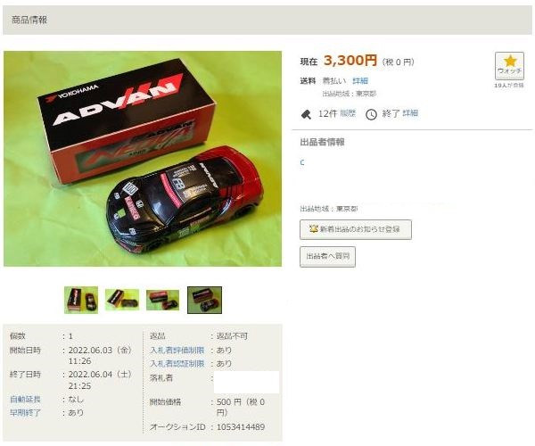 2022年6月3日にヤフオクに出品され4日に落札終了したアドバン仕様(「ヤフオク!」より)