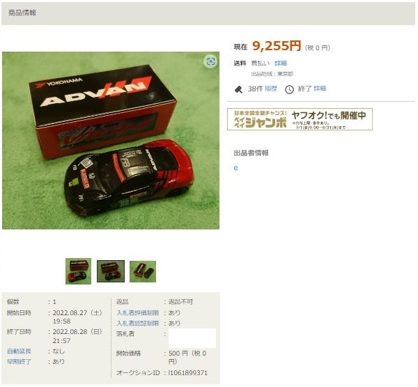 2022年8月27日にヤフオクに出品され28日に落札終了したアドバン仕様(「ヤフオク!」より)