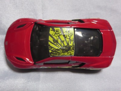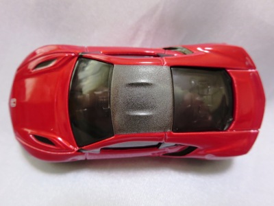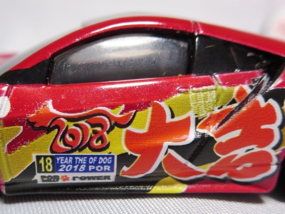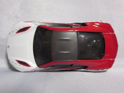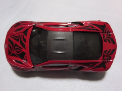 2016年12月17日、初回特別仕様と同時に発売。初回特別仕様は実車の130Rホワイト、通常品は実車のイメージカラーでもある特別色のバレンシアレッドパールをイメージしたものと思われ、それなりにイイ感じで再現されているものの、若干色が暗い感じなので、もう少しパールを多めにして明るめにしても良かったような気もする。ただ粗めのパールを多くすると、派手にはなるがオモチャ臭くなるので、あえてシックに仕上げたのかも。大幅なスケールダウンを意識し、リアリティを追求するとすると、どうしてもこうなるのだろう。 ボックスアートは初回特別仕様と色が違うだけでアングルは同じ。裏面には2016年11月1日製造を示す「K0116」の刻印が入る。 通常品のみ福袋プレゼントの応募券が封入されており、応募券にプリントされているIDナンバーを入力して会員登録すると、抽選で福袋が当たるキャンペーンに参加できる。ちなみにAコースは「家族で遊べる!福袋」、Bコースは「1人で癒せる!福袋」が賞品で、会員登録をするだけで、もれなくケータイ用待ち受け画像・PC用壁紙がもらえる。ベトナム製。 |