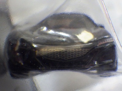 2019年1月に神奈川のコレクターの方から譲っていただいたエラー品。実車のノーズ部分はメッキパーツになっており、トミカでは、それをシルバー塗装で再現しているのであるが、この商品は未塗装で、下地であるグリル内と同じブラックのままになっている。 (下の比較画像でノーズが光っているように見えるのは光の反射であり、シルバーの塗料は全く付着していない) 実車は2018年10月25日に初のマイナーチェンジを行い、このメッキパーツがボディ同色となったので、トミカも下地がボディ同色であれば、図らずもその再現(予言)となったのであるが、残念ながら下地はブラックであった。 刻印は「J1617」(2017年10月16日製造)となっている。 |