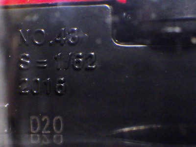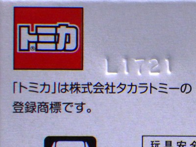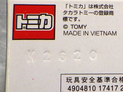 製造を表す「K0116」であるのに対し、2016年11月5日製造を表す「K0516」となっており、初回特別仕様の紙箱版と同じである。 過去のトミカの例にならい枝番は箱バージョンと同じにしておく。 |