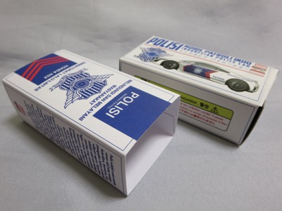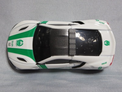 | 2017年5月29日ヤフオク初登場。 トミカ43の発売日であった2016年12月17日の翌日に早々とヤフオクに登場しコレクターを驚かせたドバイパトカー。 製作者が異なるのか、同じ製作者がバージョンアップしたのか、数パターンのデザインが確認されている。 今回の入手品は、2016年に登場したものとは製作者が異なっていると思われ、ボンネットやサイドのデザイン、ライトの有無などが異なる。 裕福なドバイは多数のスーパーカーパトカーを採用していることで有名だが、このボンネットデザインは同国のアストンマーチンOne-77のパトカーを参考にしたものと思われる。 オリジナル箱付きで登場したのは、この商品が初めてであった。 |
