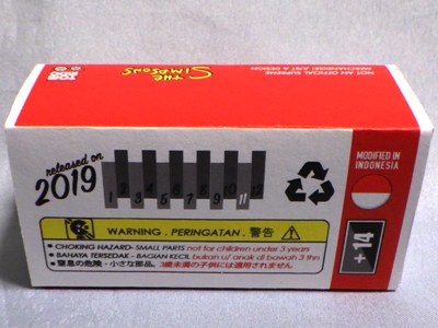2019年12月に地元のトイザらスにて購入。 上記の2種の2017年モデルのエラー品とは別に購入したもの。 当初は2016年製造モデルと比較して台紙のデザイン等に変更がなかったため、コレクションにカウントしていなかったが、2020年4月以降、トミカに限って、製造年月日違いのバリエーションも別カウントすることにした。 |