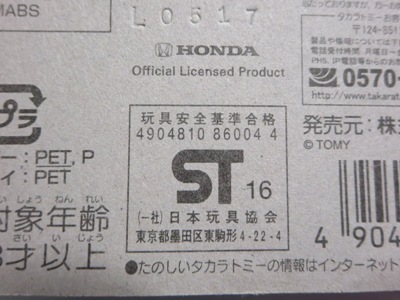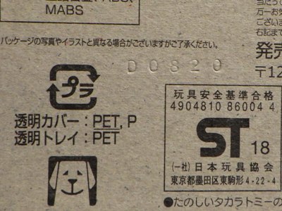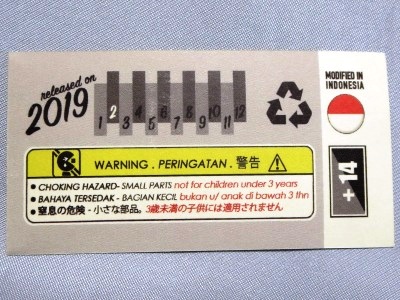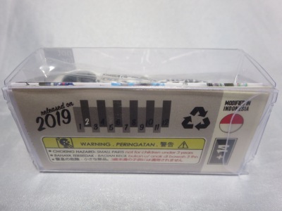 2019年7月に地元のトイザらスにて購入。 生産終了間際というわけでもないのだが、1個しか売り場になかったのと過去に購入したものと何か違いが見つけられればと思い購入。 「B0718」(2018年2月7日製造)の刻印が入っている。 パッケージの表裏共にまったくデザインに変更はなく、そこは残念だったのだが、明らかに紙質が変わっている。 2016年モデルは明るい茶色、2017年モデルはそれが暗い感じになって印刷の文字がやや不鮮明に。そして2018年モデルで明るいグレーの上質な紙になり、印刷の文字もこれまでで最も見やすくなっている。 |